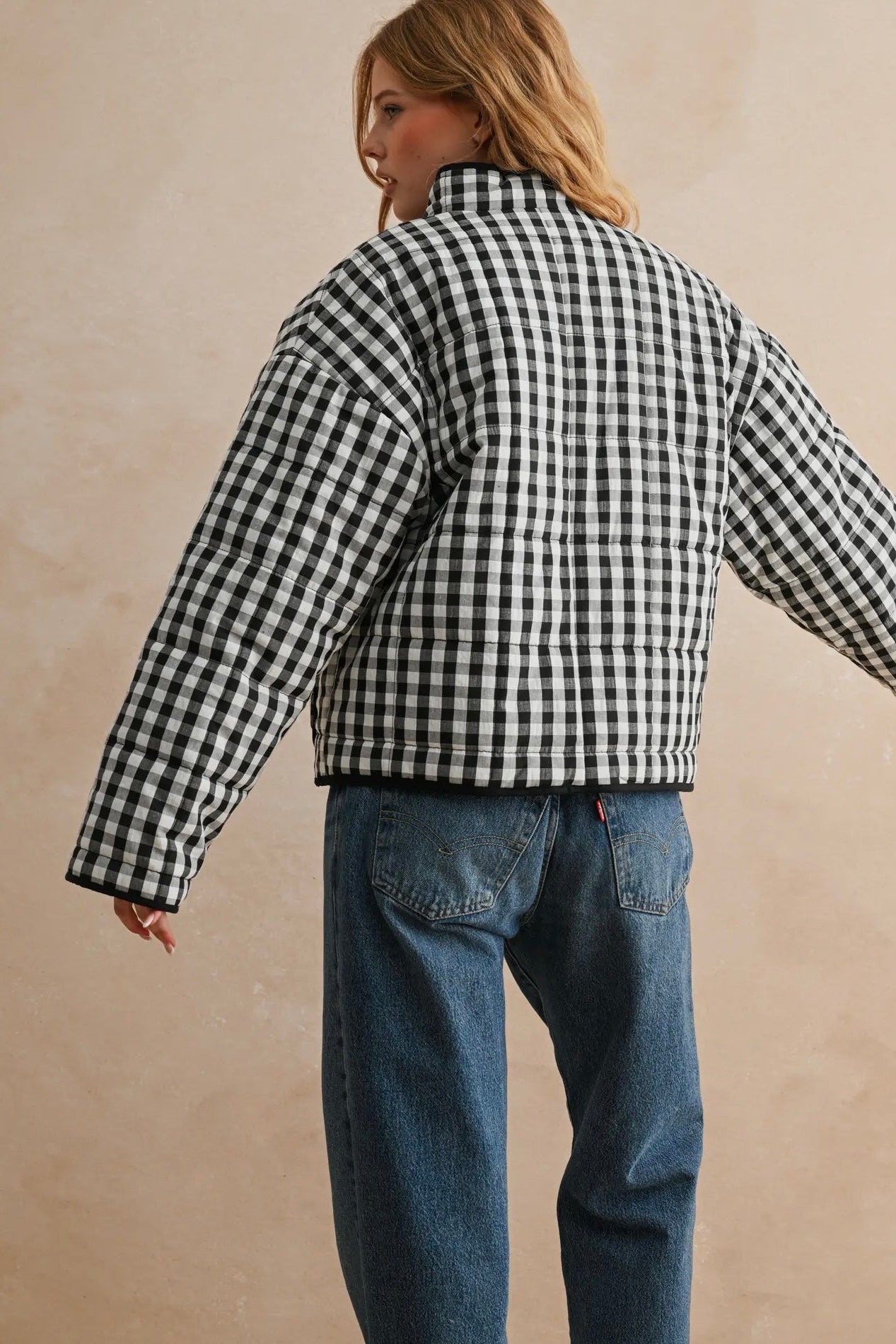 April says: I am 5'3", weigh 125 pounds, wear a 36 B bra, and I wear a S/M in this jacket. It's the perfect fall and holiday staple!