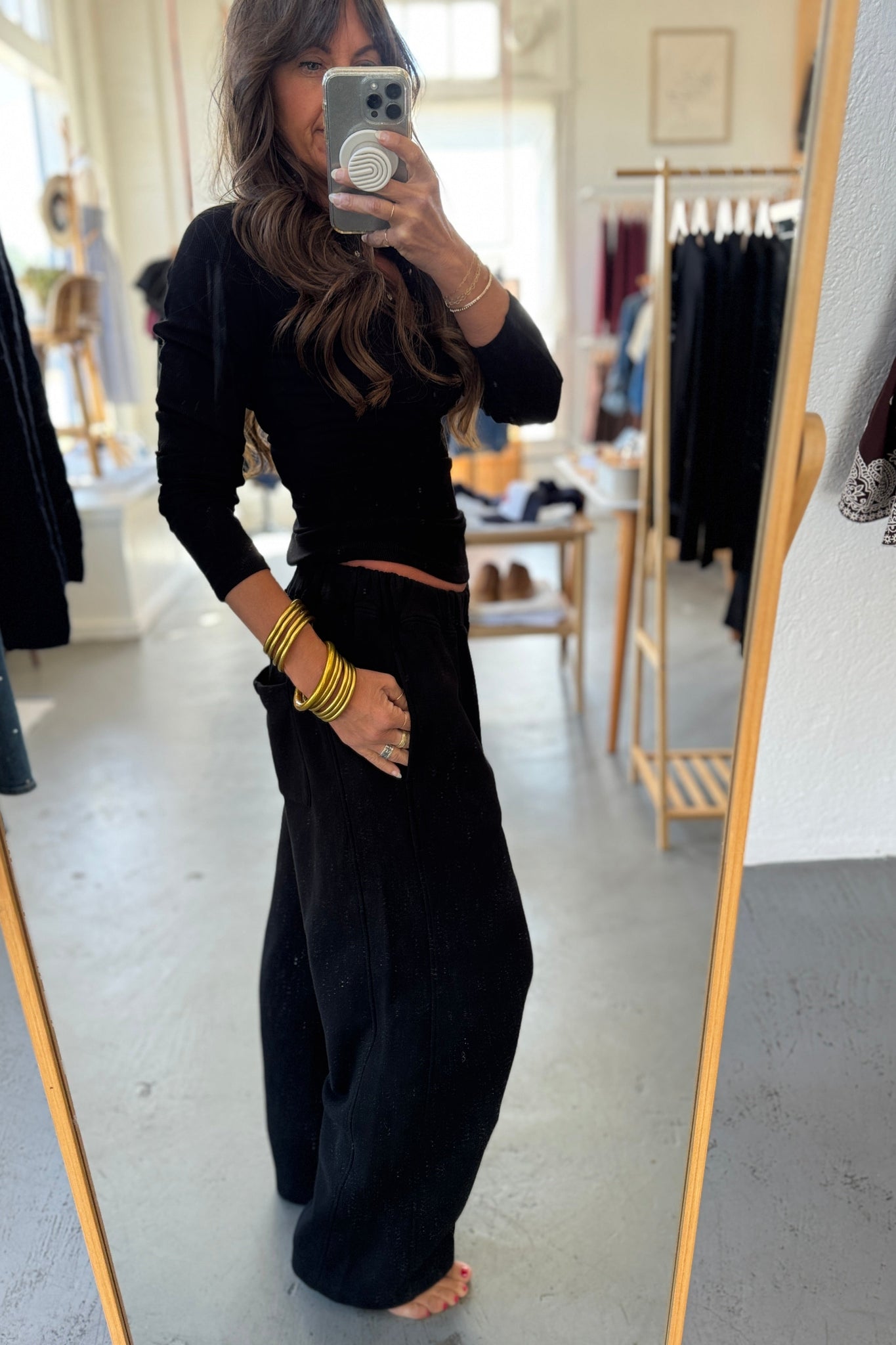 They have a slight barrel shape but look more like a wide leg, baggy sweat pant