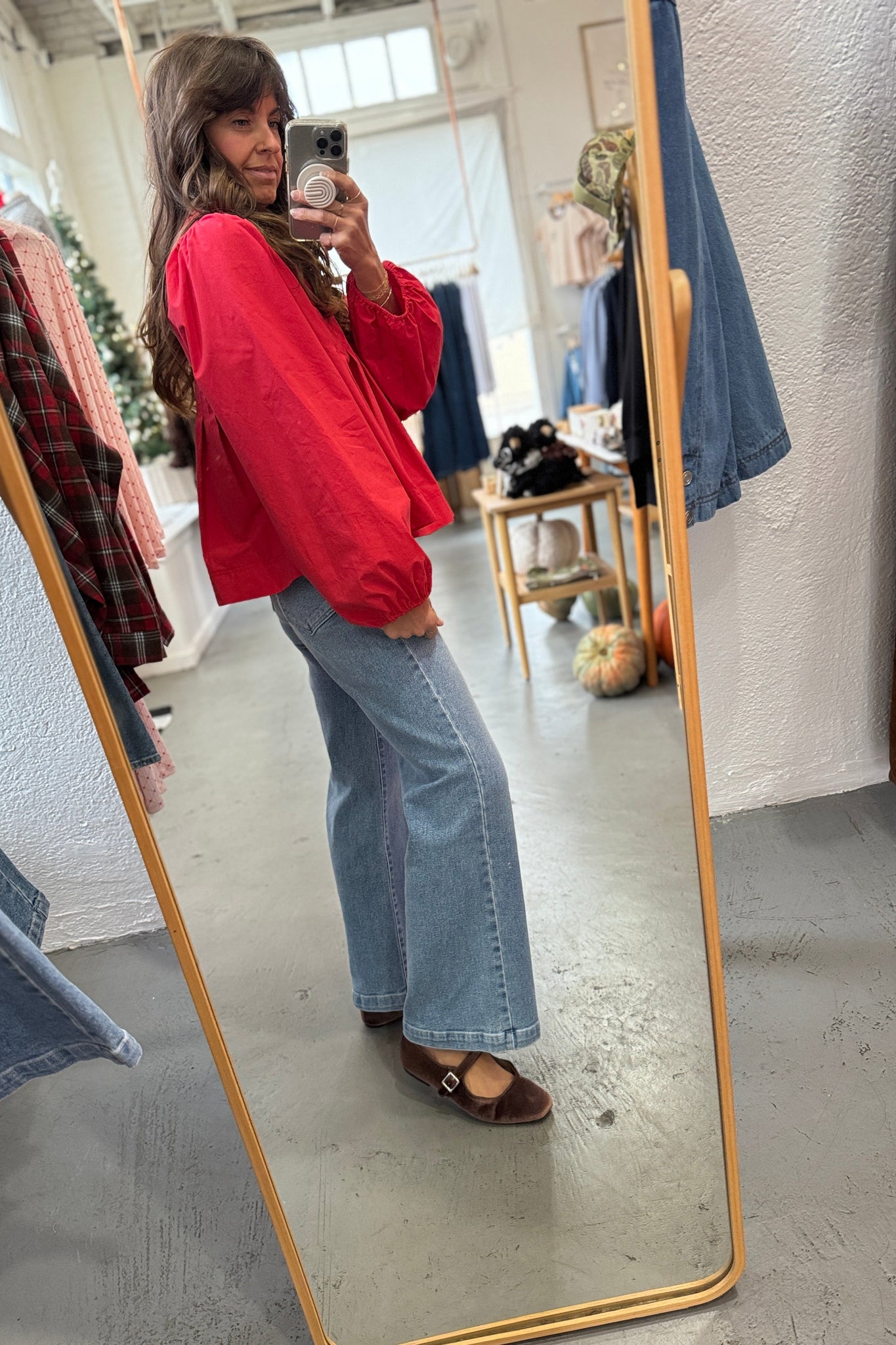 April says: I am 5'3", weigh 125 pounds, wear a 36 B bra, and I wear a small in this top. I have broad shoulders so sometimes these shirts don't work for me but this one fits beautifully on me. I have room for my shoulders and my chest and I love the fit + flow of this top.