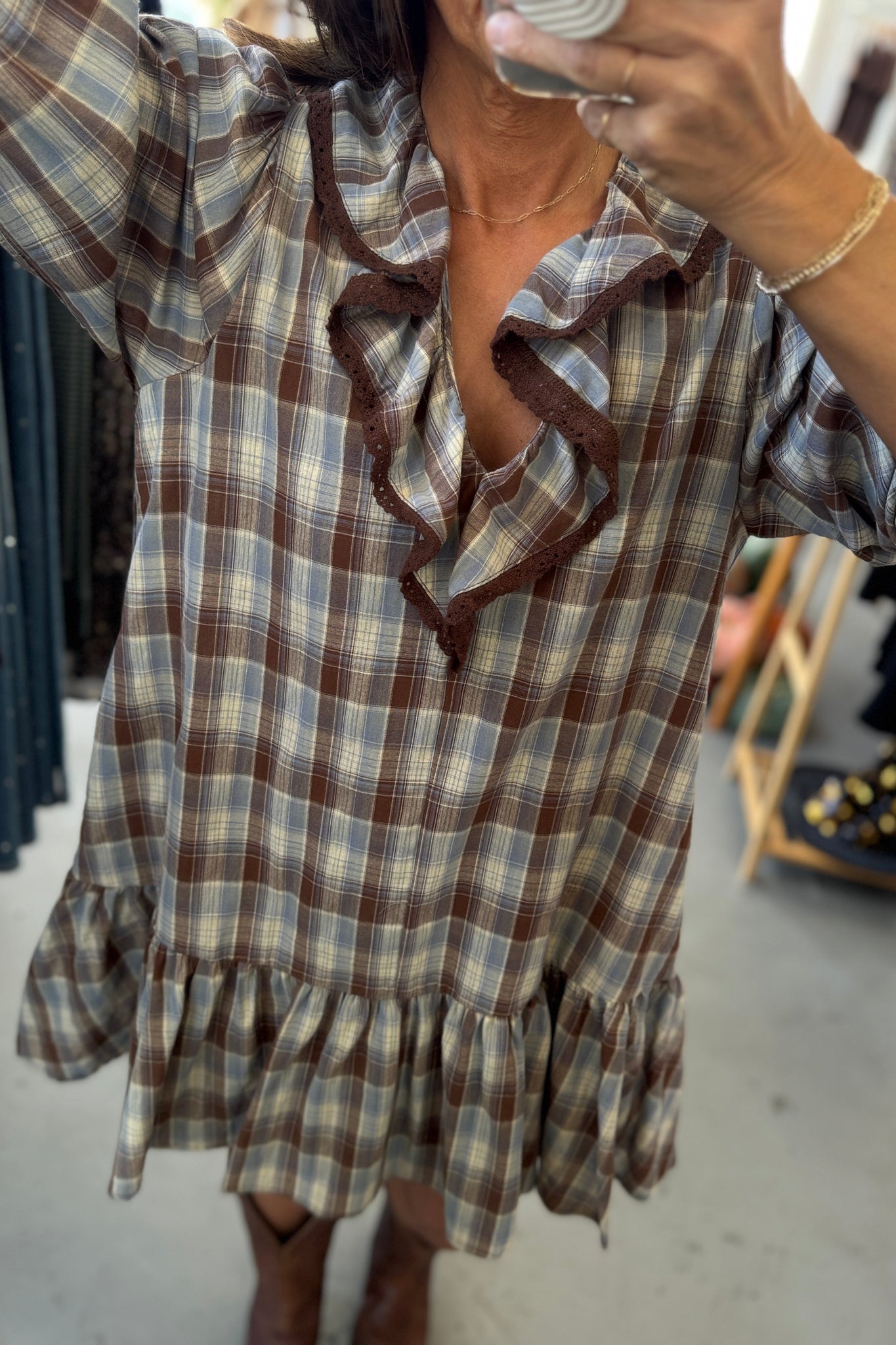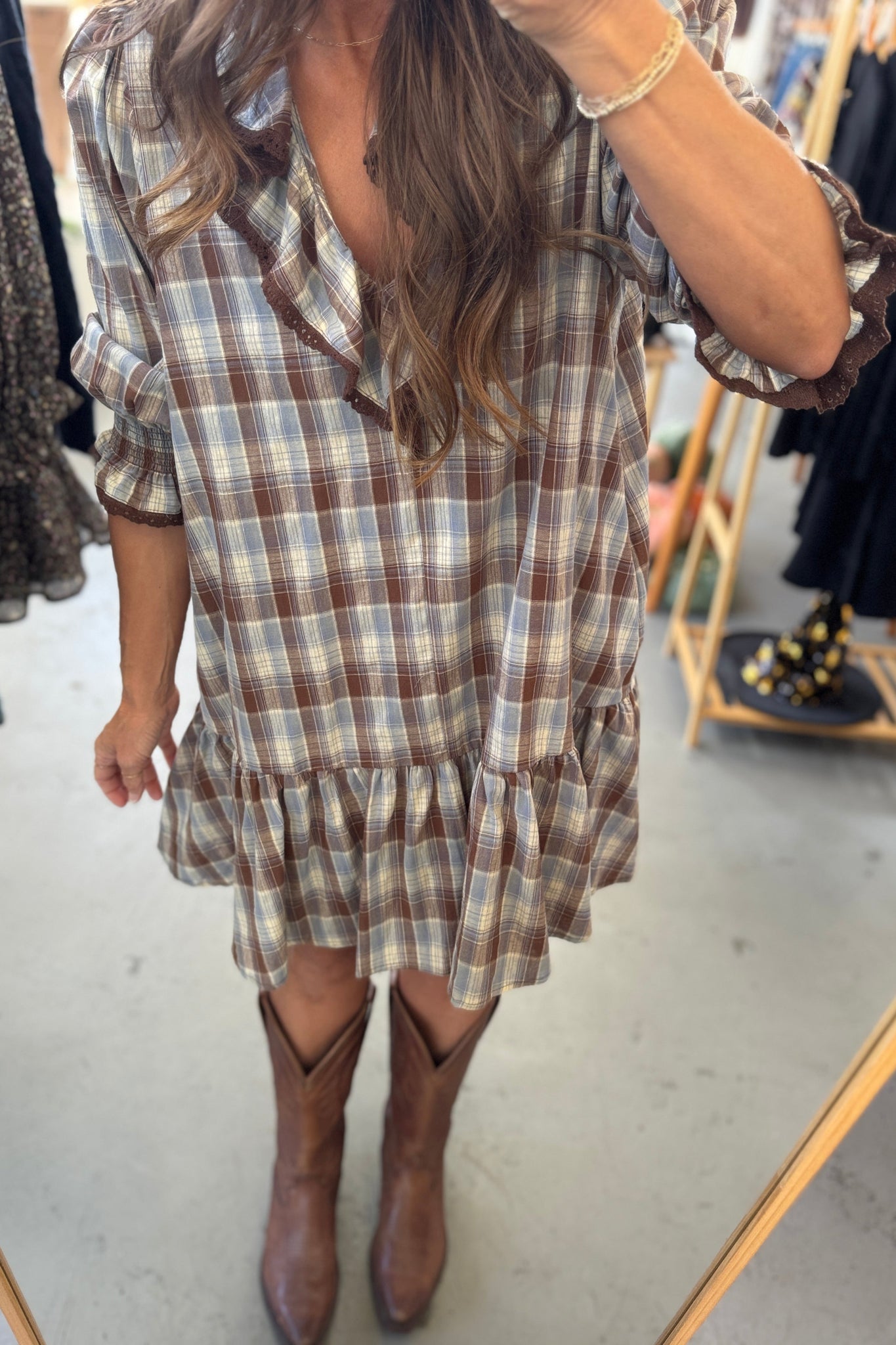 April says: I am 5'3", weigh 125 pounds, wear a 36 B bra, size 4 jeans, and I wear a small in this dress. It's plenty roomy, looks precious with both boots and Mary Janes- the best little fall dress!