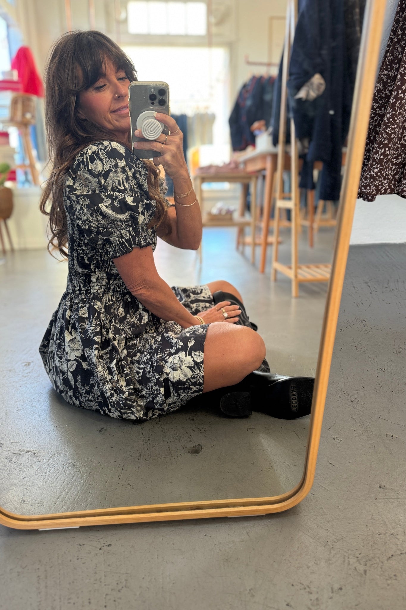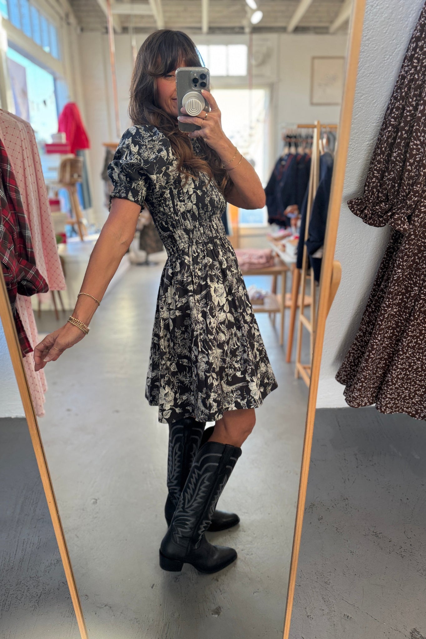 April says: I am 5'3", weigh 125 pounds, wear a 36 B bra, size 4 jeans, and I wear a small in this dress. It's such a great fit; hits at a modest point on my leg (right above my knee).