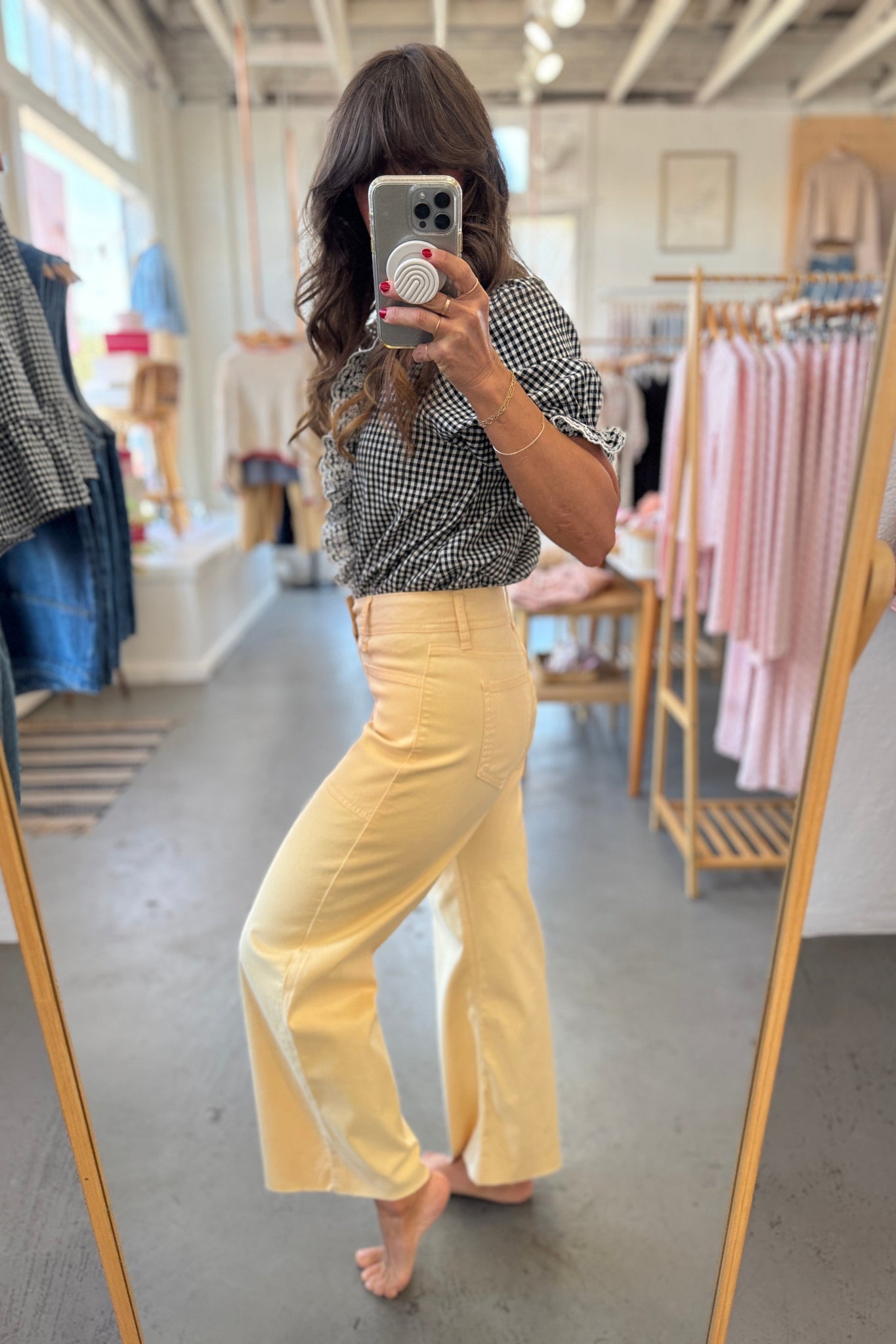 April says: I am 5'3", weigh 125 pounds, wear size 4 jeans, and I wear waist size 25 in these. The 25 is fitted on me but does not give me muffin top. I also like the 26 because it looks a little loose and slouchy- I like both looks.