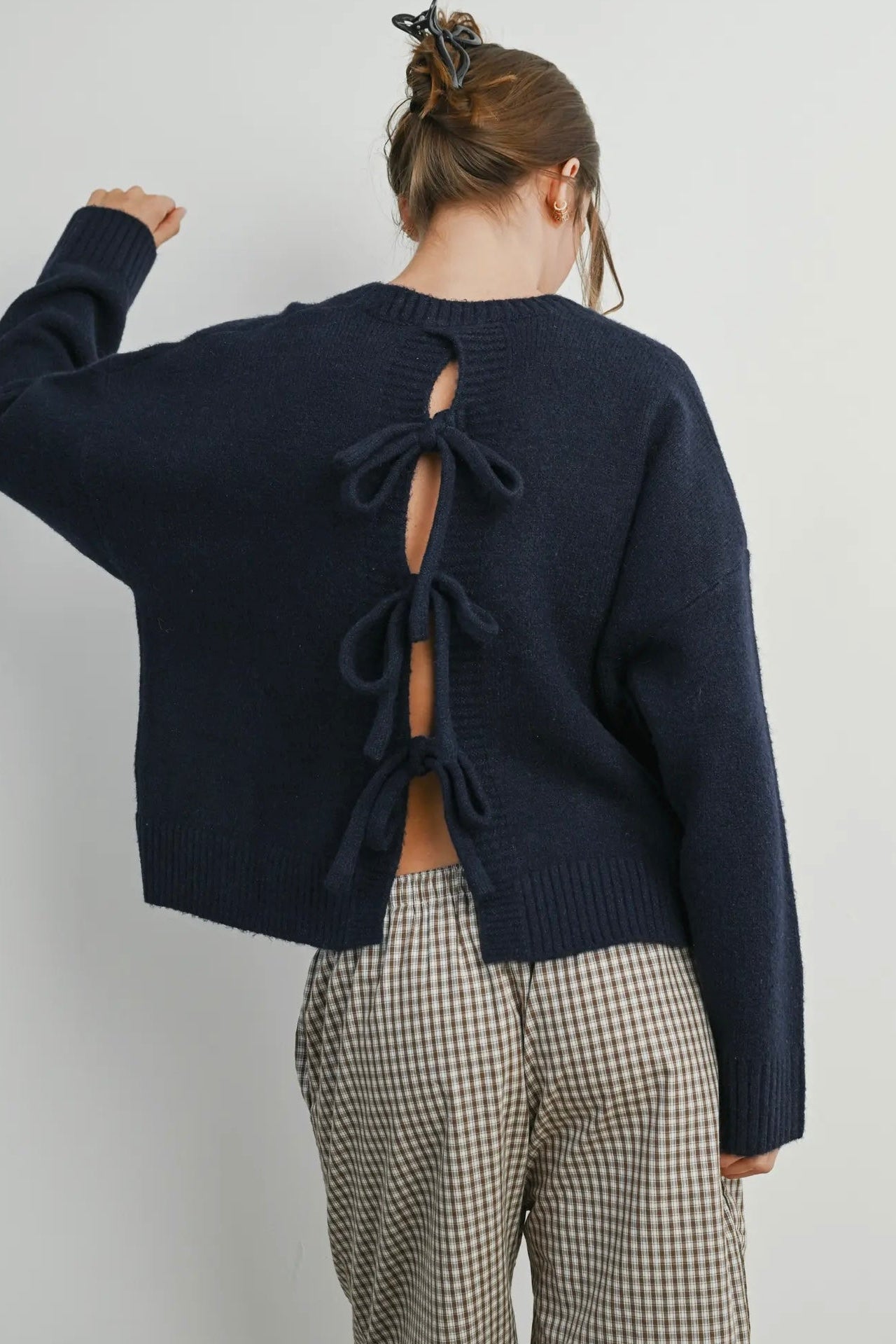 3 adjustable bow ties on the back of sweater