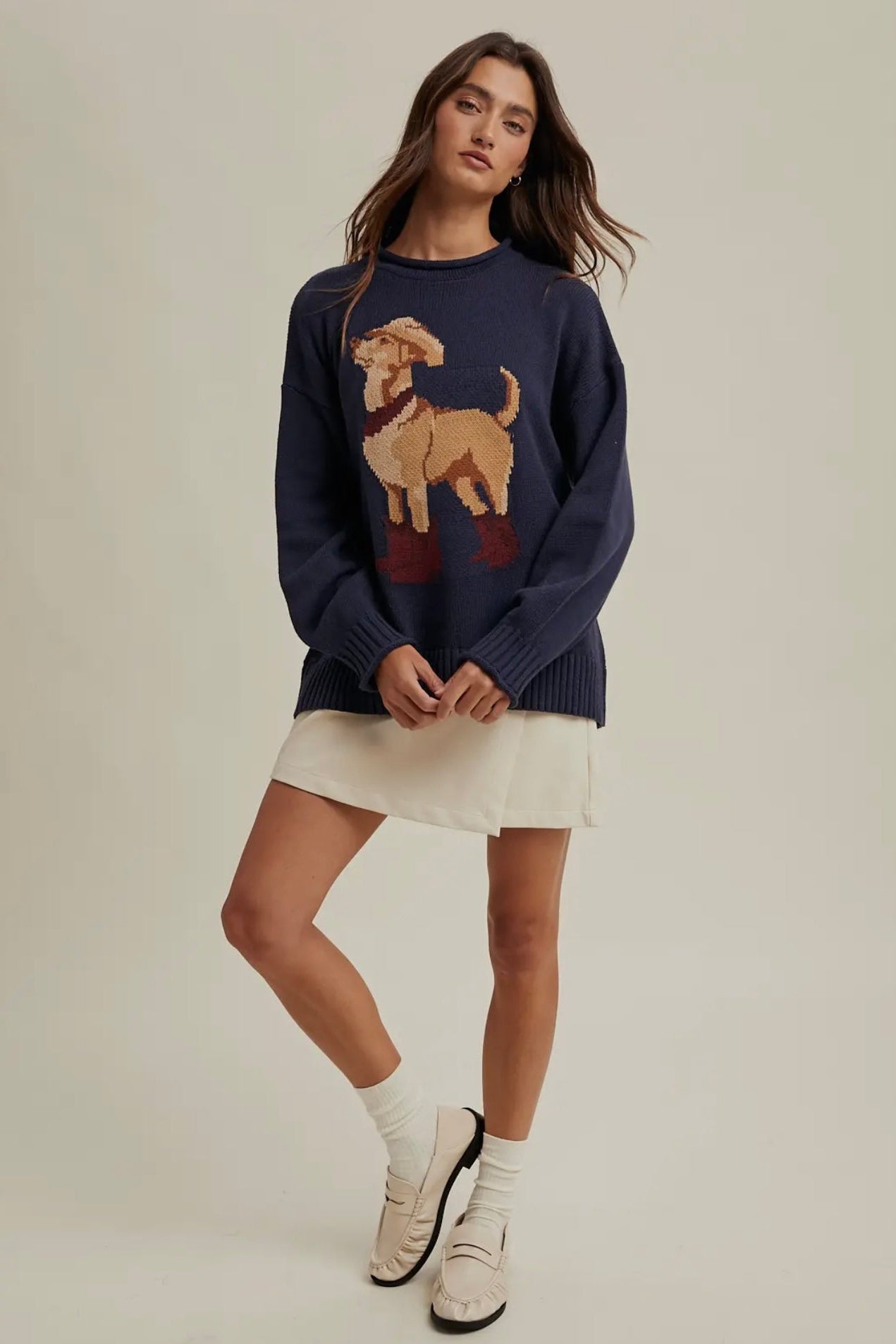 April says: I am 5'3", weigh 125 pounds, wear a 36 B bra, and I wear a small in this sweater. The graphic is absolutely darling and goes perfectly with denim and skirts and you can even wear it over a strappy dress.