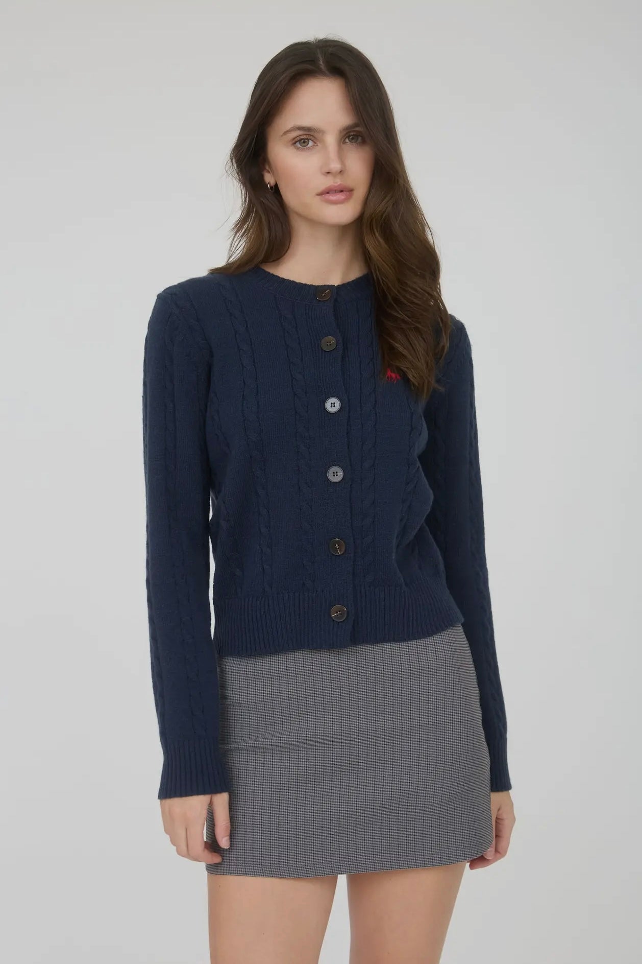 April says: I am 5'3", weigh 125 pounds, wear a 36 B bra, and I wear a small in this cardigan. This one has room in it for me to layer or I can wear it, as is. It's a staple, a go-to, that will always be in your closet!