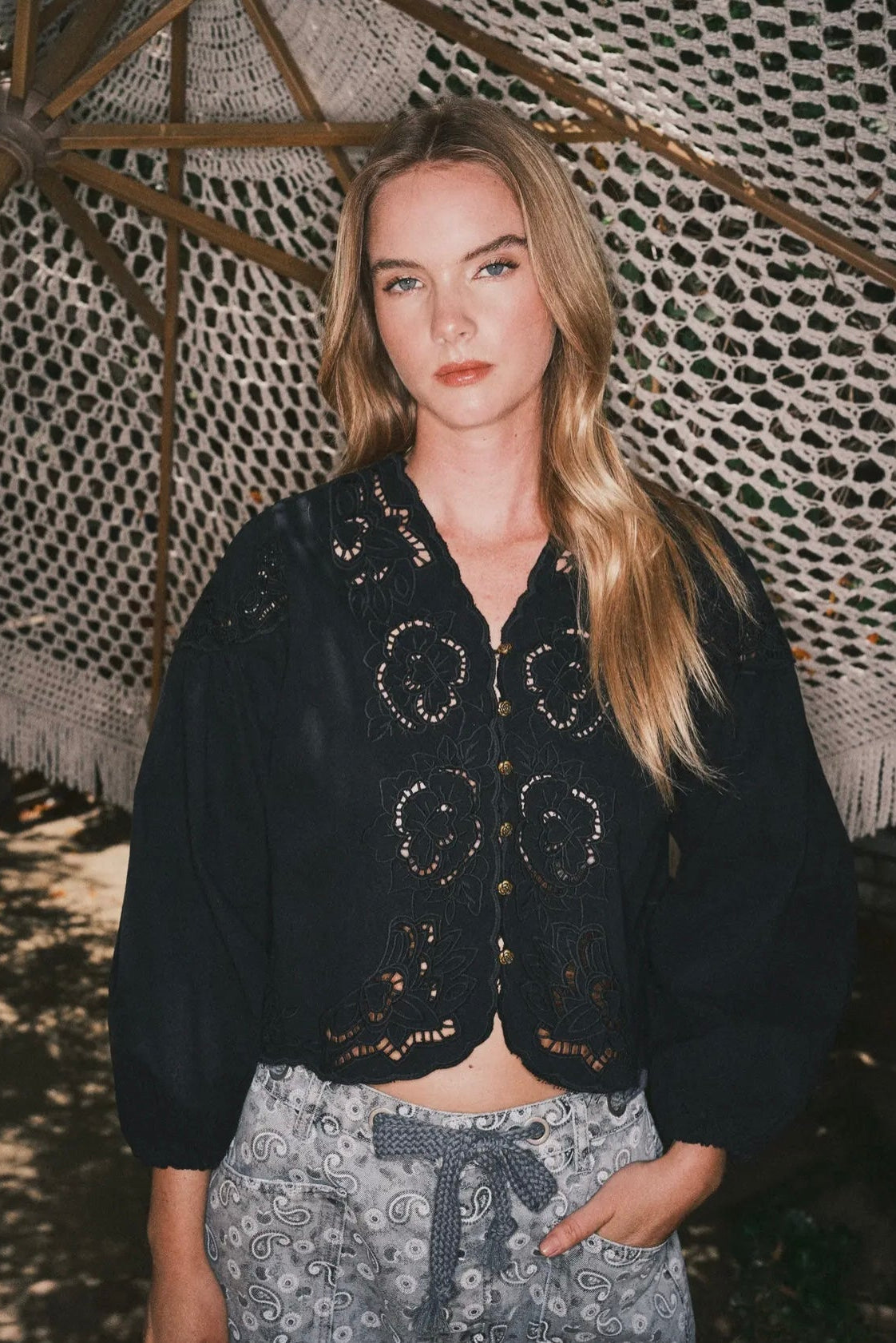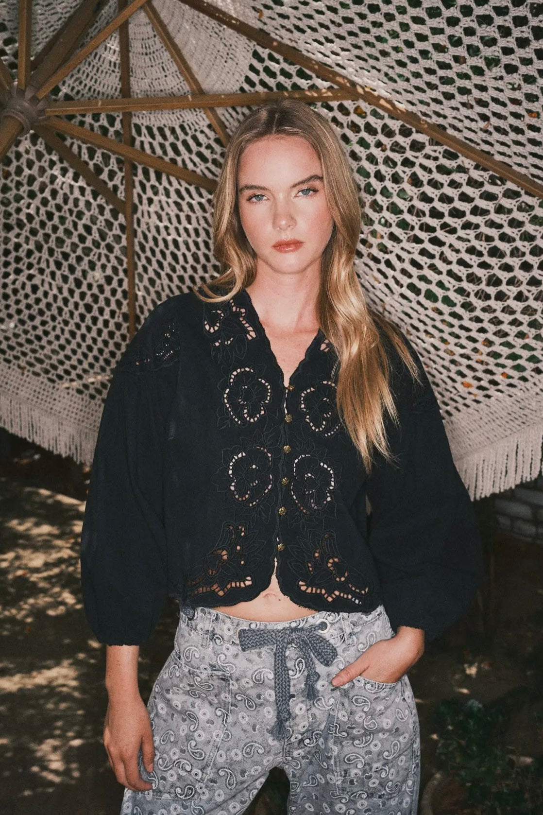 April says: I am 5'3", weigh 125 pounds, wear a 36 B bra, and I wear a small in this top. It hits right at the top of my jeans. The embroidery and lace designs are intricate and stunning- you will get compliments on this top!
