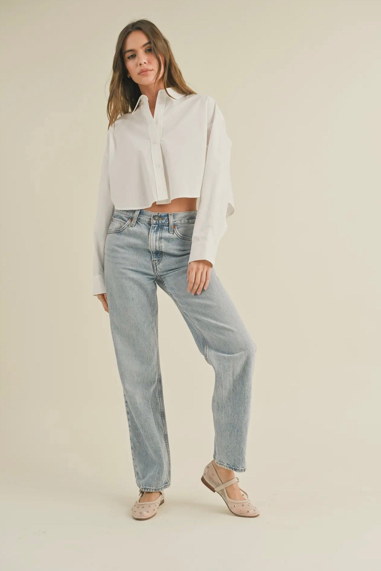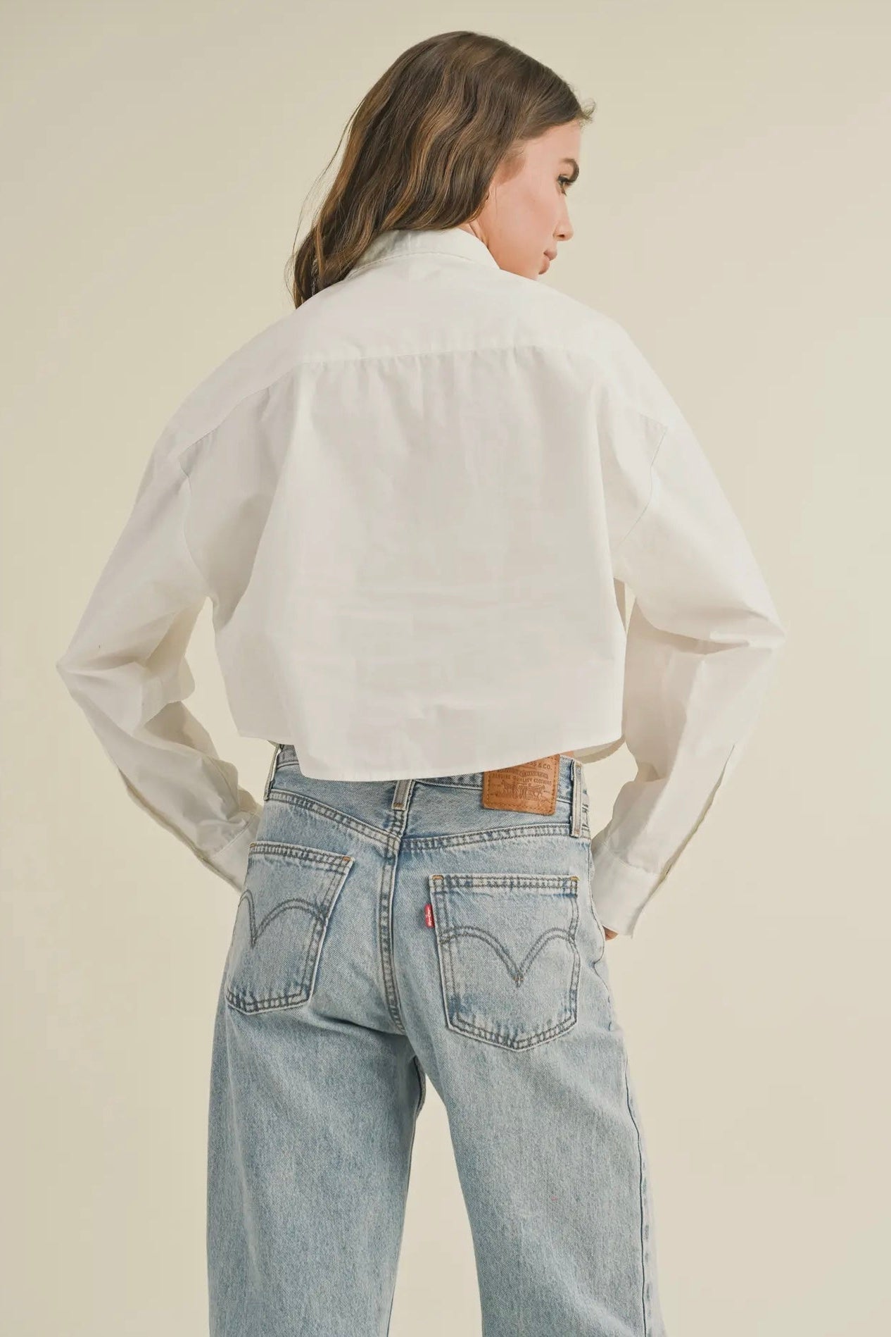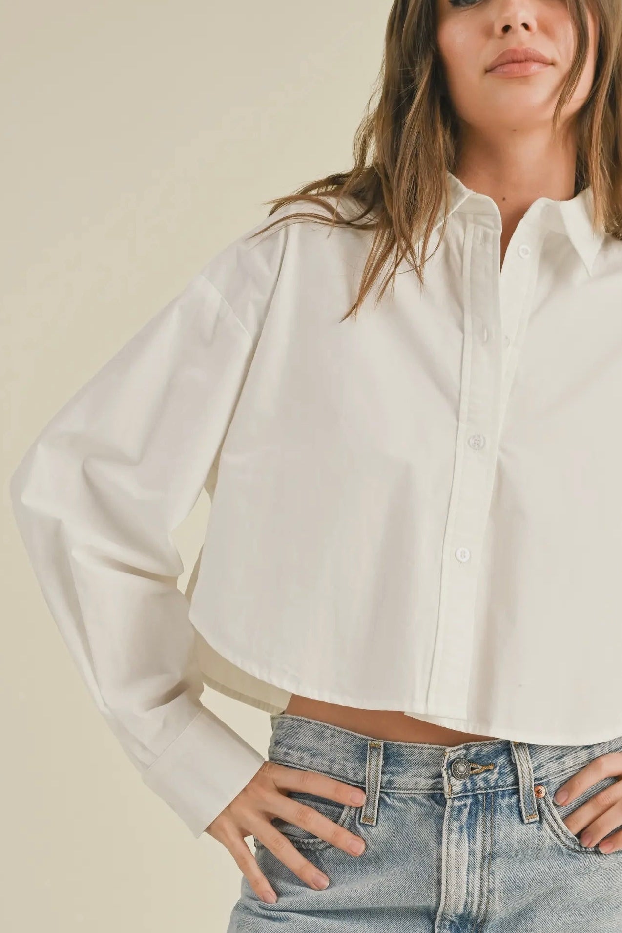April says: I am 5'3", weigh 125 pounds, wear a 36 B bra, and I wear a small in this top. It's such a great take on the classic button down; perfect for layering under a cable knit sweater without having a lot of bulky fabric.