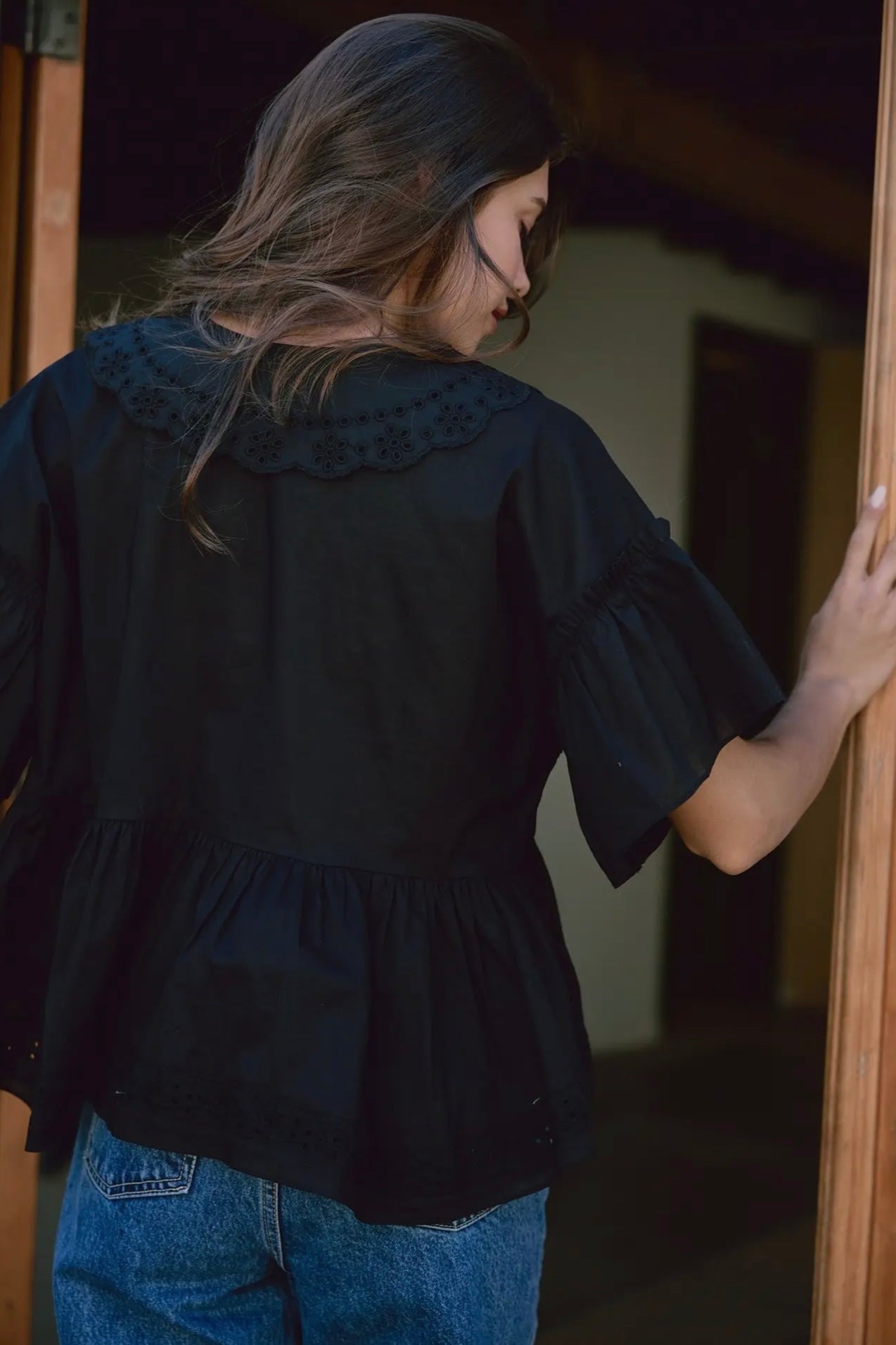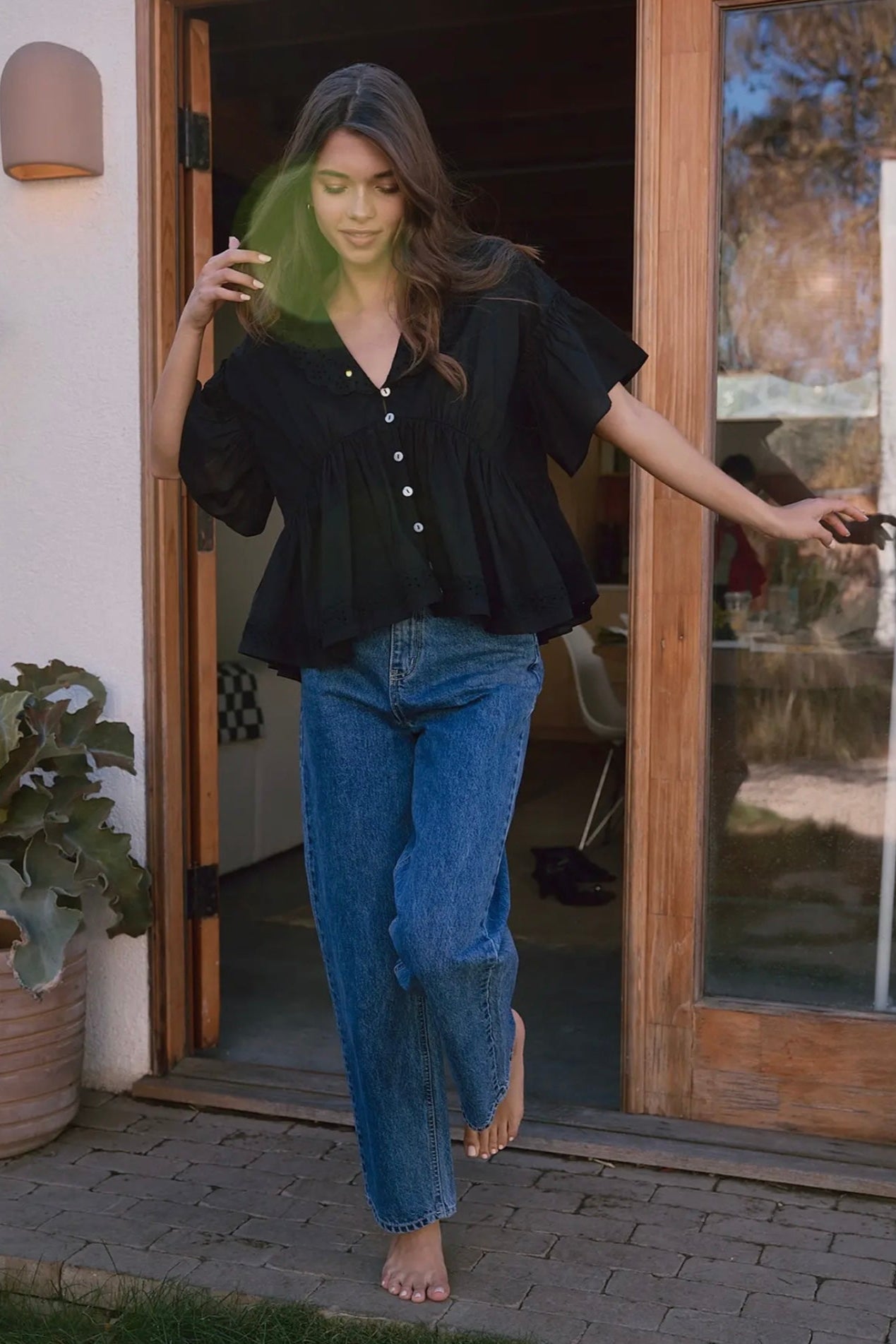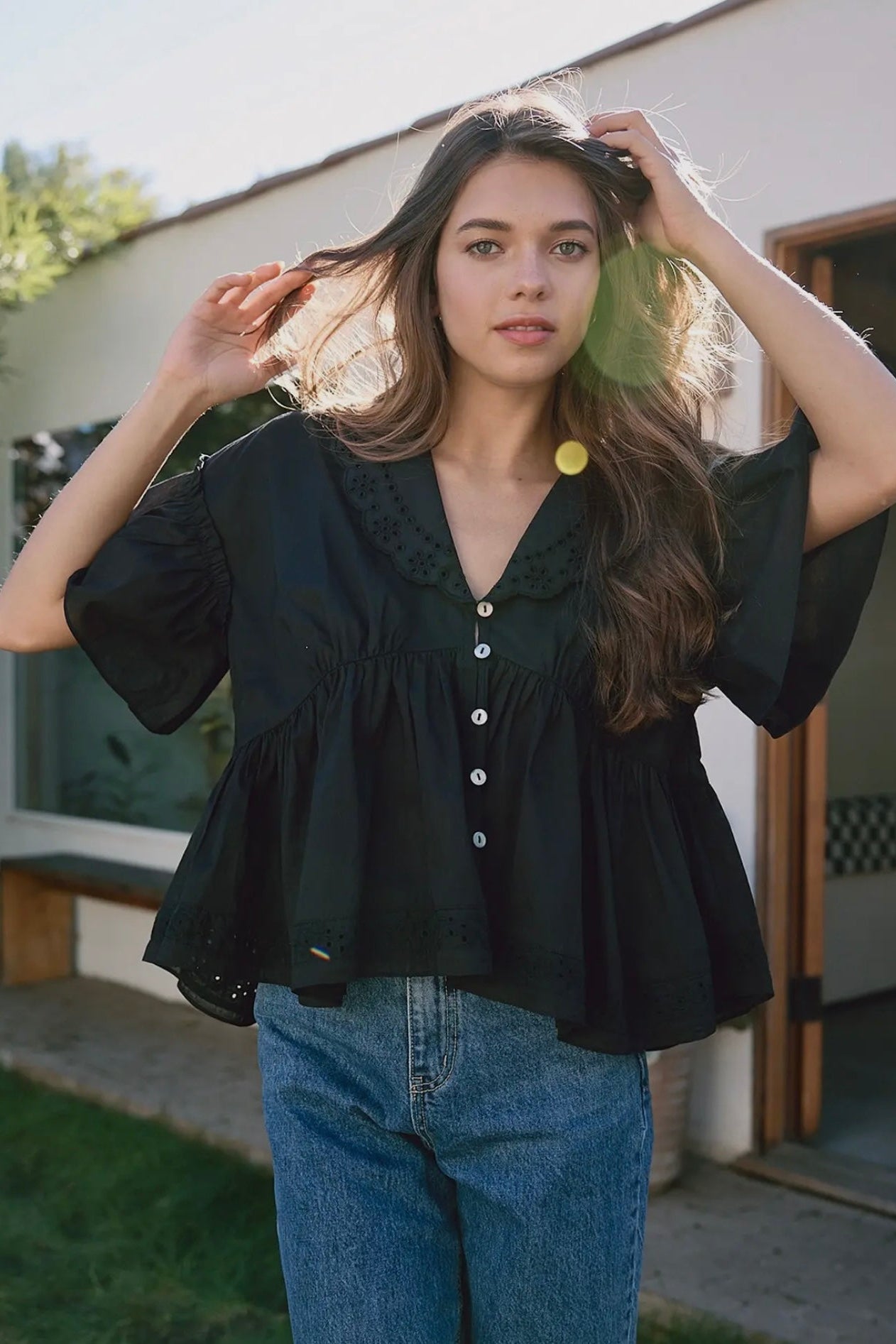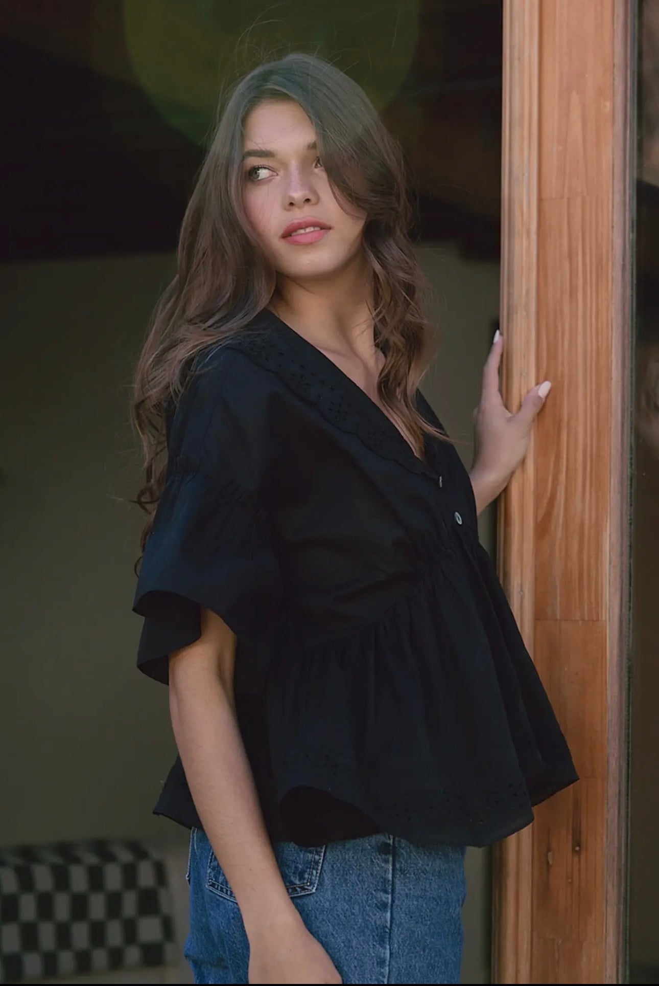 April says: I am 5'3", weigh 125 pounds, wear a 36 B bra, and I wear a small in this top. I adore this precious top- so easy to wear and goes with all your favorite denim.